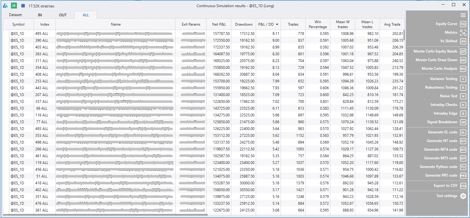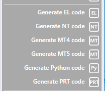 To generate code for any strategy created by Build Alpha, simply highlight the strategy and click the code generator of your choice in the lower right of the results window.