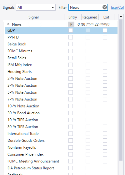 Access to economic events and news releases allows you to create algo trading strategies that isolate news releases and time of day. For instance, Nonfarm payrolls and 8:30 AM ET could be inputs to developing a Jobs Friday trading system. Test how your strategies do around certain news releases.
