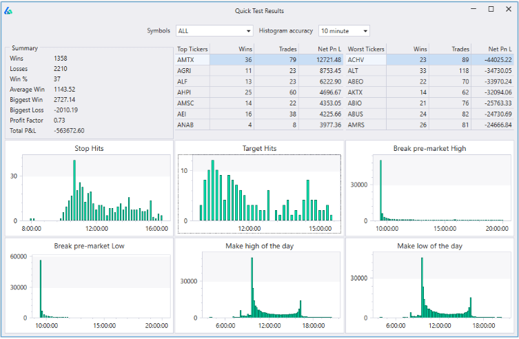 Want to know the best time to exit a position? Want to know what time most stocks break their pre-market high or low? How about what times your profit or stop losses are hit? These insights can help you modify your risk management or trading bot for more powerful trading backed by historical data.