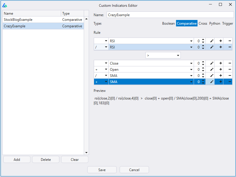 If you cannot find the signal you are looking for in the built-in signal library of 6,000+ signals, then you can build your own. There are two ways you can create custom indicators in Build Alpha.